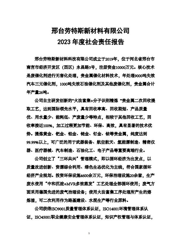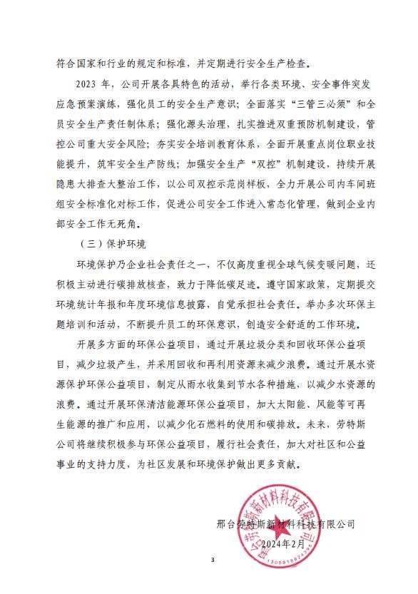 邢臺勞特斯新材料有限公司2023 年度社會責(zé)任報(bào)告
